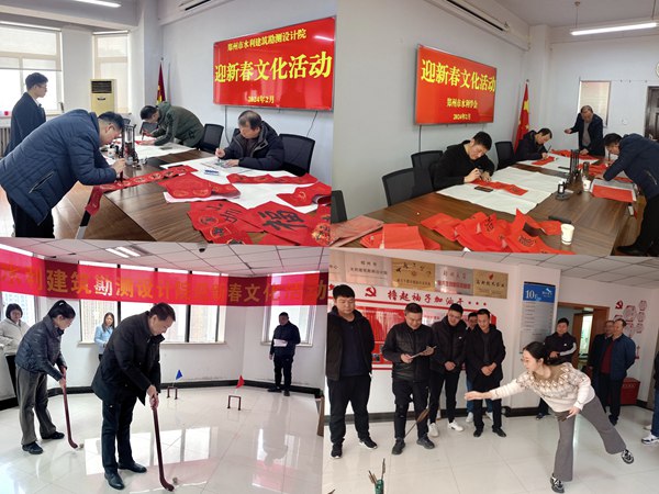 龍騰報春,攜夢前行。2024龍年新春佳節即將來臨之際,為營造喜慶祥和的節日氛圍,2月6日至2月7日,市水利建筑勘測設計院黨總支、工會聯合開展迎新春文化活動。