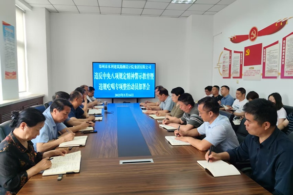 5月16日下午,市水利建筑勘測設計院集團有限公司召開違反中央八項規定精神警示教育暨違規吃喝專項整治動員部署會,公司領導班子成員、各黨支部書記及中層干部參加會議。