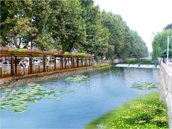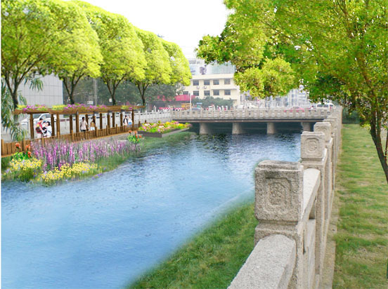 西楊村河、城東河位于平頂山市繁華地區(qū)。對于兩河的治理,我院總的治河理念是以生態(tài)修復(fù)為基本手段和目標(biāo),結(jié)合景觀生態(tài)學(xué)、植被生態(tài)學(xué)、土壤生態(tài)學(xué)、水文生態(tài)學(xué)和經(jīng)濟(jì)生態(tài)學(xué)等相關(guān)學(xué)科的運(yùn)用,對河道進(jìn)行最大限度的生態(tài)修復(fù)以及景觀品質(zhì)的提升。本次河道治理原則:“在清淤、治污、清水引入、水岸綠化上充分體現(xiàn)水清岸綠,富有濱水特色的景觀群,為平頂山市創(chuàng)建山水園林城市增添景點(diǎn)”。即西楊村河以展示礦業(yè)城市新形象、新風(fēng)貌的景觀河道,突出“碧水繁花”的生態(tài)河道景觀特點(diǎn);城東河則突出“生態(tài)自然,和諧樂居”的城市河流文化景觀。